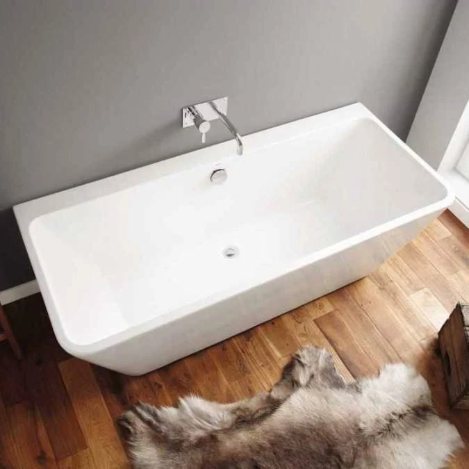 Featuring a unique modern back to wall design, The Eppleby Freestanding Bath by April Products provides functional luxury in your contemporary bathroom.