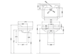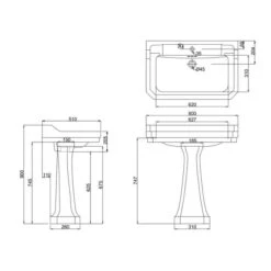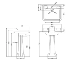 Burlington Classic 65cm Square Basin With Invisible Overflow & Pedestal