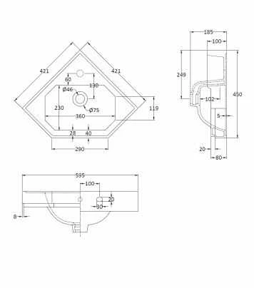 This is for the Traditional Corner Basin only, a tap will have to be purchased separately. Click here to view our full range of Basin Taps.