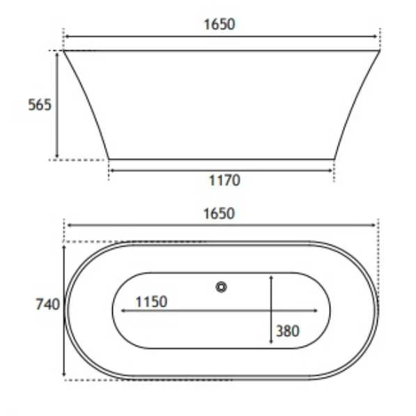 Beaufort Charlton White Freestanding Bath 1650 x 740mm Inc Waste