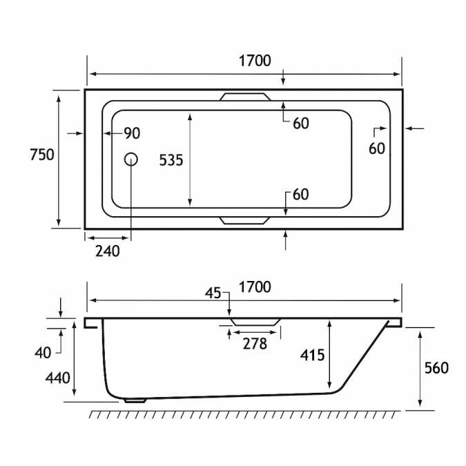 This 1700 x 750 Single ended Twin Grip Bath Features Beauforte extra reinforcement which adds an additional layer of insulation to the underside of the bath. This means that the warm bath temperature is retained for much longer. A long relaxing soak can be enjoyed with no need to top up with hot water, less wasteful and good for the environment. This market leading reinforcement process results in a product that is as strong as a steel bath and almost double the strength of a typical acrylic bath. This result gives us a more rigid bath with no movement or flexibility when you shower or bathe. It results in a bath that is as strong as a steel bath and around 45% stronger than a typical acrylic bath