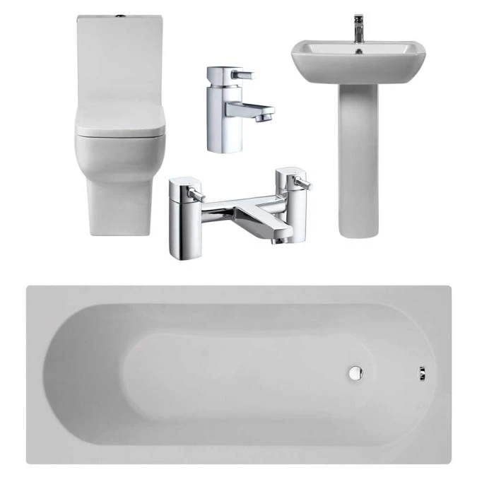 The Bella Suite from Frontline complete with 1700mm bath combines everything you need to create a beautiful bathroom. The single ended bath has the perfect size and shape to be the centrepiece of your family bathroom. This suite comes with a single ended 1700mm bath and front panel to match, toilet with cistern & seat, 550mm sink basin with pedestal, basin taps, bath taps and chrome wastes.
