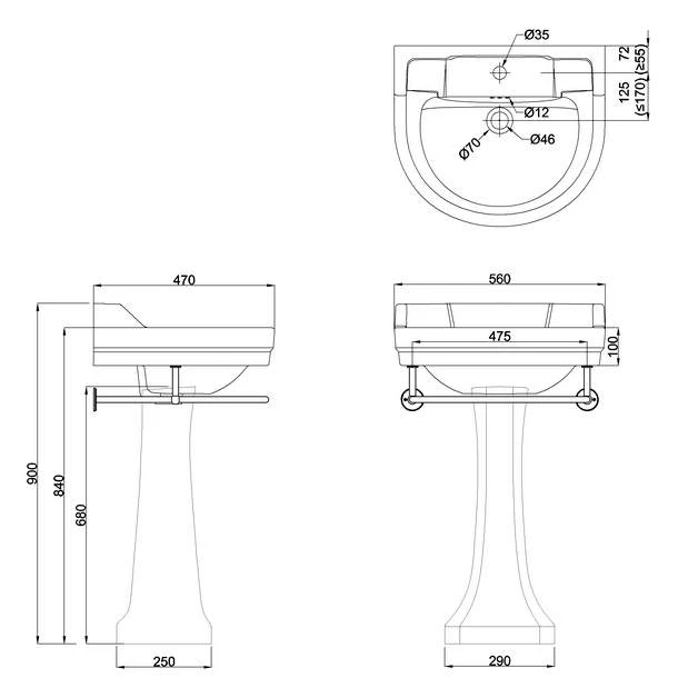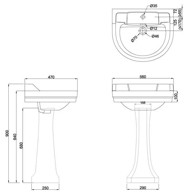 Edwardian 56cm Round Basin and Classic Pedestal by Burlington