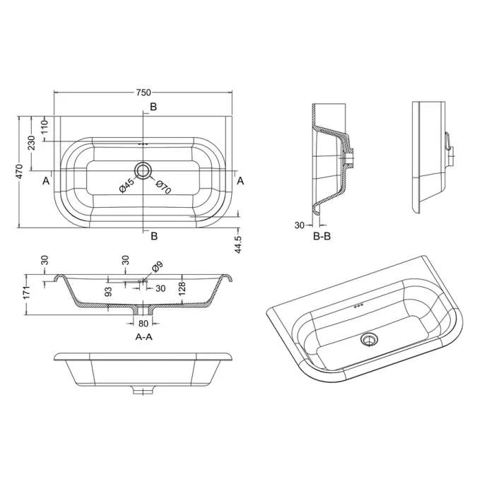 The Burlington Natural Stone Basin comes with a template for one, two or three tap holes.