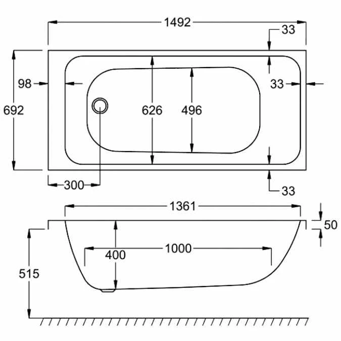 Carron Carronite Profile Single Ended Bath – 1500 x 700mm
