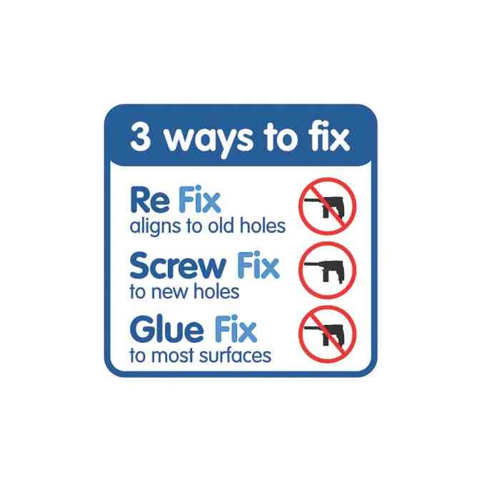 Flexi-Fix products use a unique bracket that is so universal it can be used when replacing the majority of existing bathroom accessories by utilising the same fixing holes, regardless of spacing or alignment.