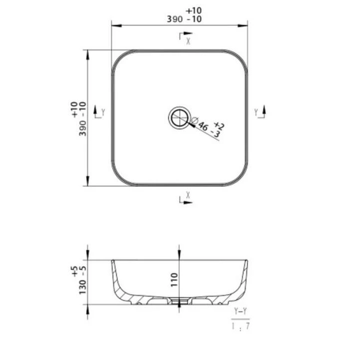 Gressingham 400mm Ceramic Square Washbowl and Waste in Matt Black