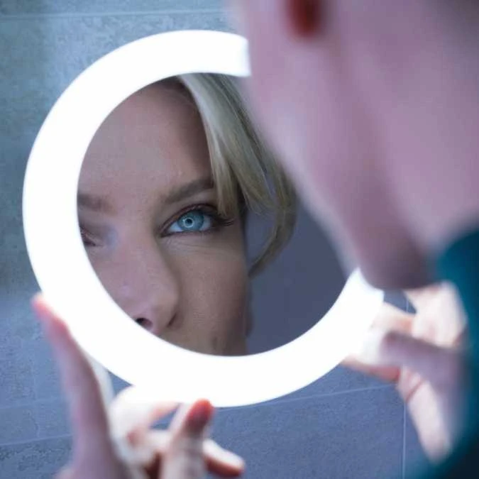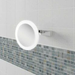 The Libra mirror has a x3 magnification which illuminates as you pull it towards you and turns off when you fold it away. The light is activated by a micro switch in the joint. To turn illumination on pull the mirror away from the wall and push towards the wall to turn off.