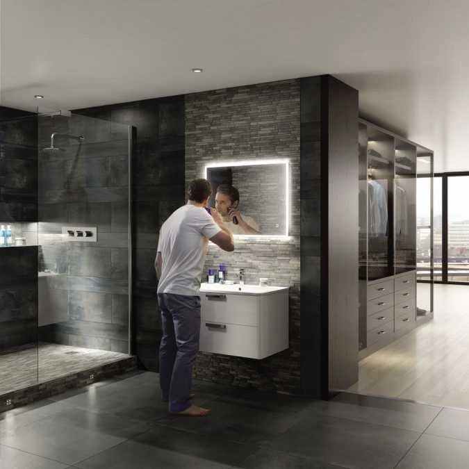 The HIB Vega features LED colour temperature changing lighting operated by simply waving your hand infront of the sensor and a discreet charging socket, hidden behind the mirror front. The socket is suitable for your toothbrushes, shavers and trimmers. The Vega is also fitted with a heated pad to keep your glass clear when you have been showering or bathing.