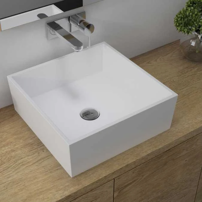 The Sabina square resin basin will complement any vanity unit and wash stand.Â