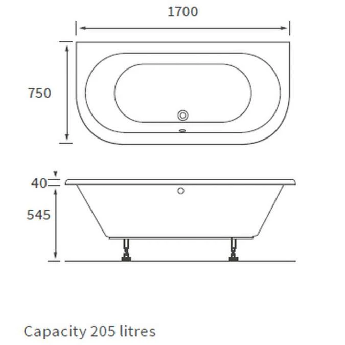 Saxony DOUBLECAST 1700 x 750mm Back To Wall Bath