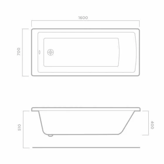 Lorenzo 1600 x 700mm single ended premium reinforced acrylic rectangular bath by Tissino.