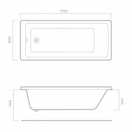 Lorenzo 1700 x 800mm Single ended premium reinforced acrylic rectangular bath by Tissino.