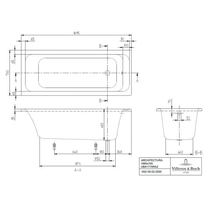 Villeroy & Boch Architectura 1700 x 700mm Single Ended Bath.