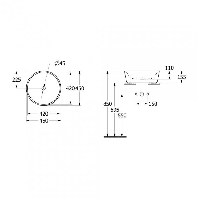 Architectura Counter Top Basin Techical Information: