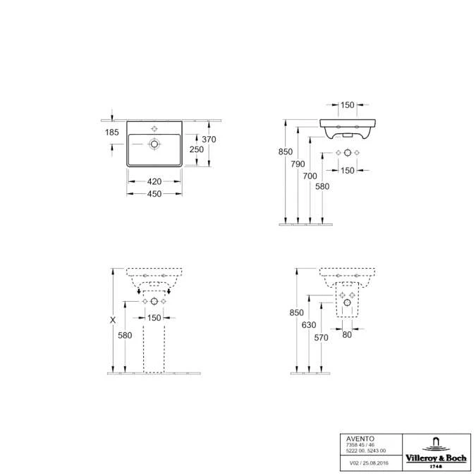 Villeroy & Boch Avento Hand Wash Basin, 450mm, White Alpin, Without Overflow –Â 73584501