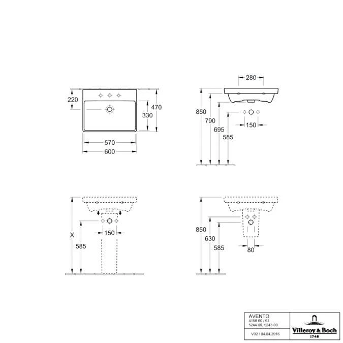 Villeroy & Boch Avento Wash Basin, 600mm, White Alpin, With Overflow –Â 41586001