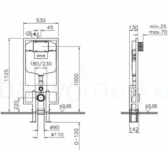 The VitrA Short WC frame for Floor Mounted toilets comes with an option for a front or top mounted flush plate (flush plate sold seperately.) and includes dual flush 3/6 litre cistern.